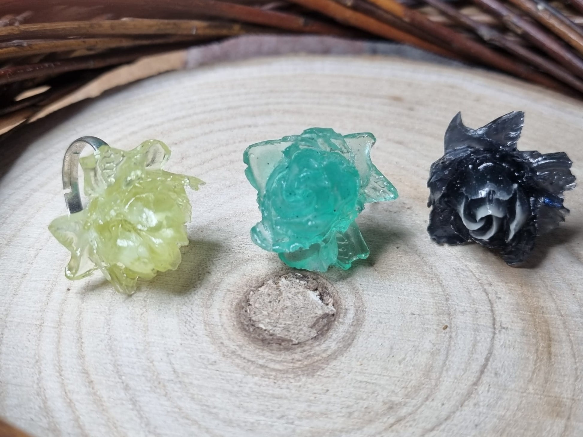 Anelli realizzati in resina dai bellissimi colori ed effetti unici, realizzati in resina, polveri colorate e inchiostri.