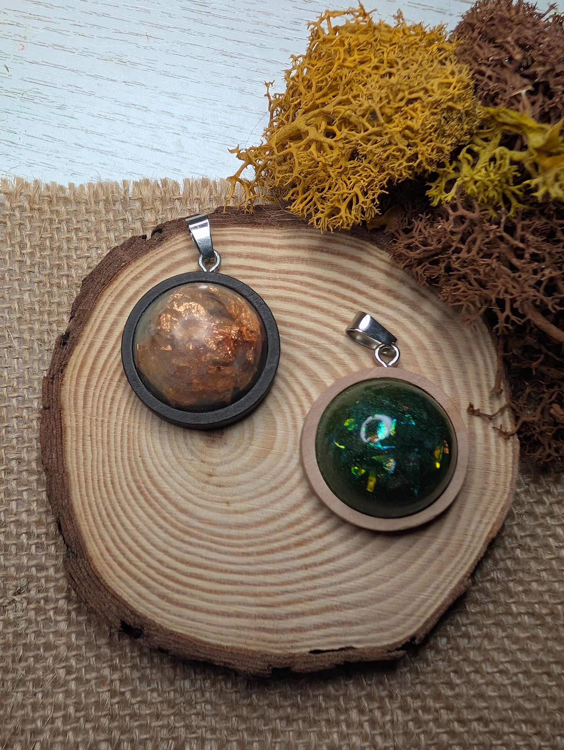 Ciondoli in Resina con Cammeo in legno