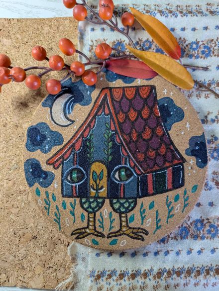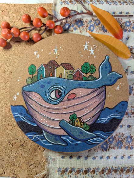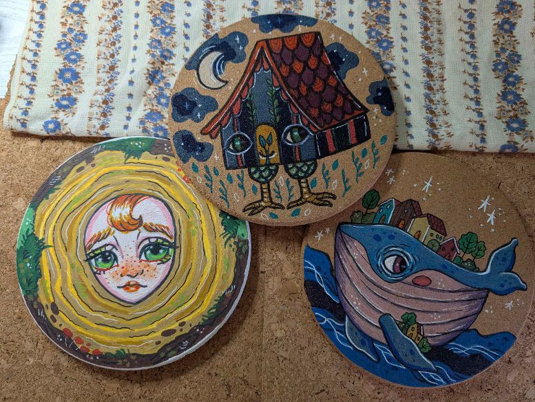 Illustrazioni originali realizzate ad acrilico su disco di sughero