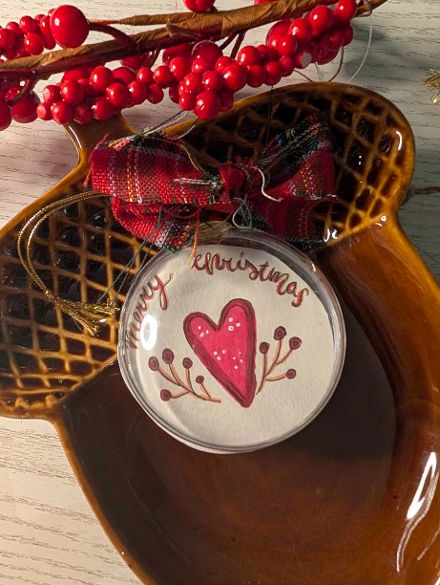 Simpatiche palline natalizie, con fiocchetto artigianale, realizzate a mano e con illustrazioni originali al proprio interno.