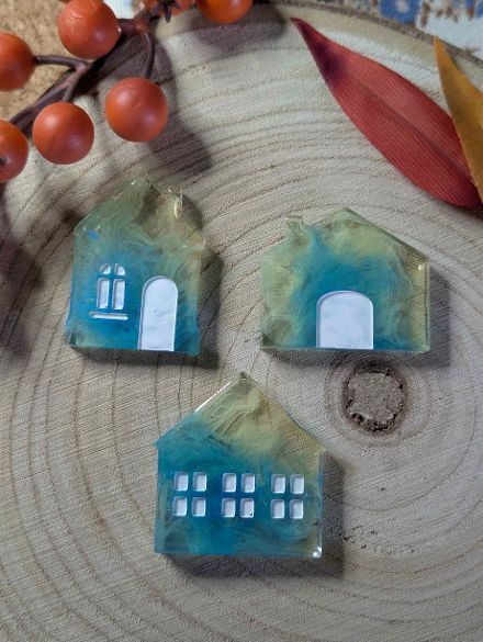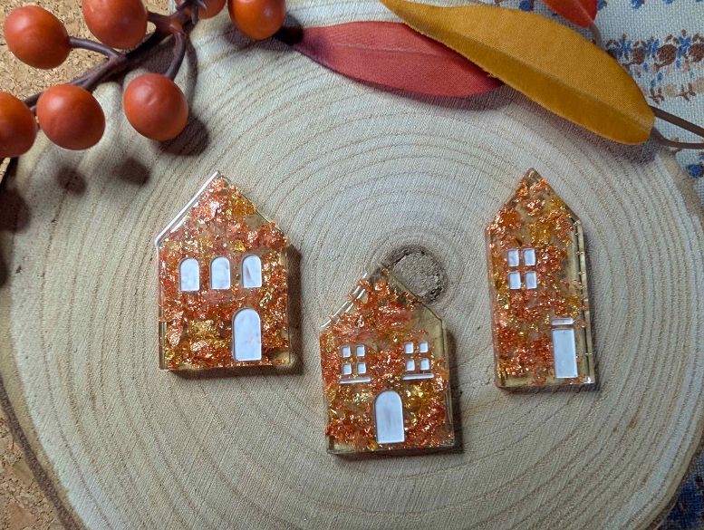 Realizzati in resina, verranno montati per renderli portachiavi e verranno aggiunte delle perline abbinate.